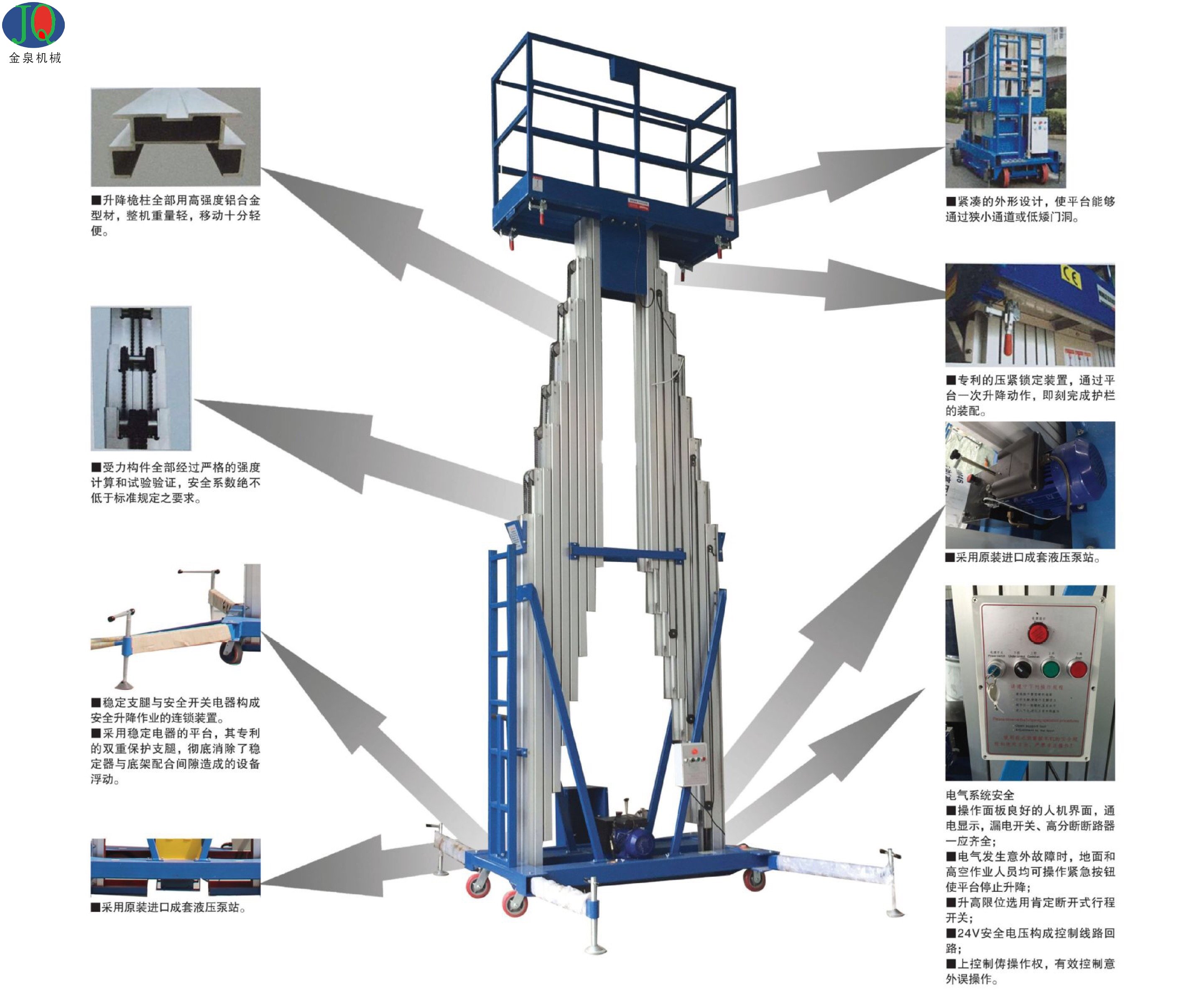 1、兩組桅柱支撐作業(yè)平臺同步升降,具有優(yōu)秀的工作穩(wěn)定性 2、整體升降式護(hù)欄裝置,強(qiáng)度好,運(yùn)輸時(shí)大幅度地降低整機(jī)高度,裝卸十分方便,通過一次升降即可完成裝配或拆卸 3、具有單桅柱同樣的方便的機(jī)動(dòng)靈活性,支退結(jié)構(gòu)同單桅柱式平臺 4、有較好的承載能力,適合于不超過兩人同時(shí)登高作業(yè) 5、可配加龍門跨架 |