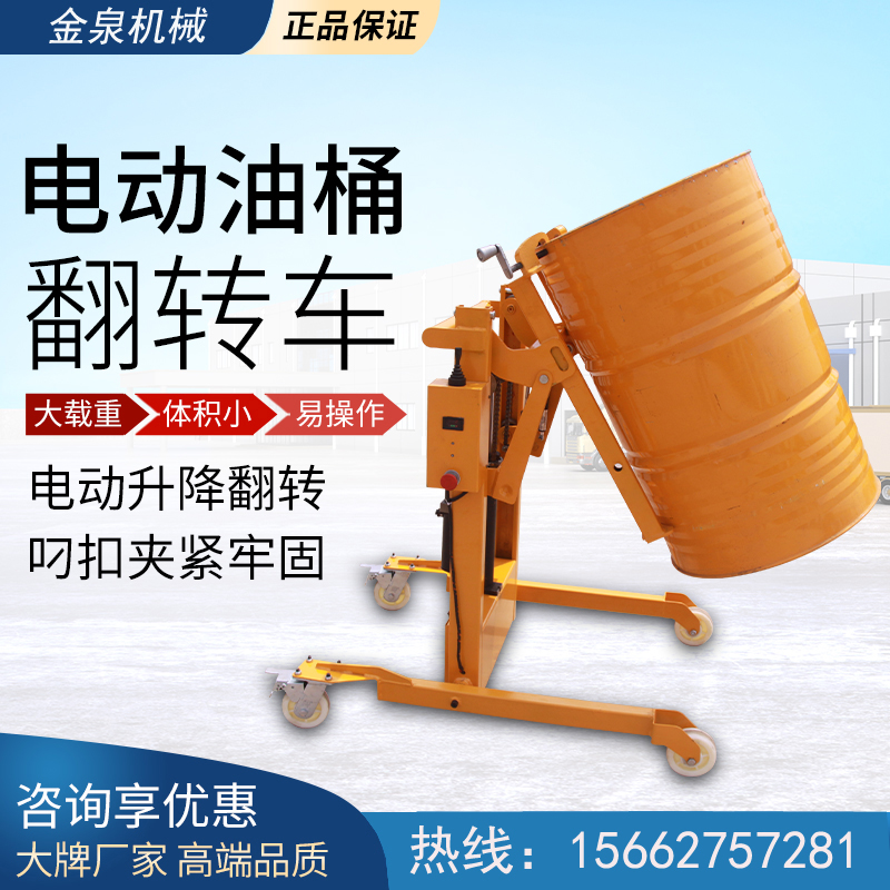 本車有電動升降,電動翻轉(zhuǎn)裝置,輕松實現(xiàn)油桶翻轉(zhuǎn)